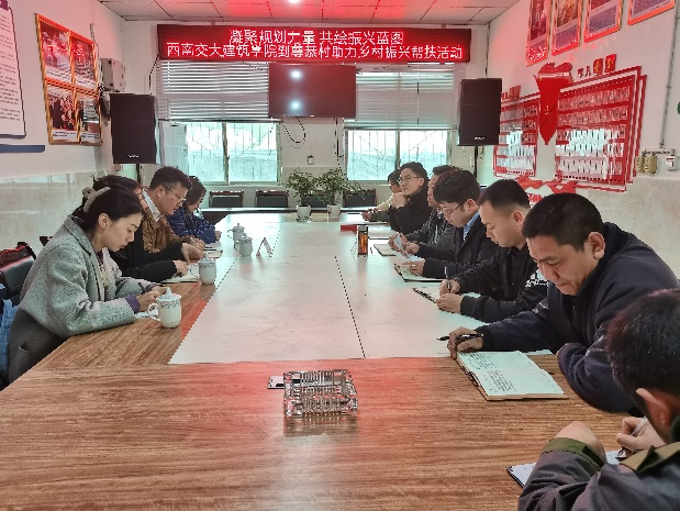 为进一步学习贯彻党的二十大精神,落实在全党大兴调查研究的工作要求,3月23日下午,建筑学院城乡规划师生党支部展“凝聚规划力量,共绘振兴蓝图”——赴尊恭村助力乡村振兴帮扶结对活动。学院城乡规划系党支部书记于洋、学院党委组织员方翰、研城乡规划党支部书记周艾莲、关心茹、成都董家梗镇尊恭村党总支书记袁世超、村第一书记张华兴、驻村选调生李渊、村委会副主任刘泉鑫等人参与了此次帮扶结对活动。