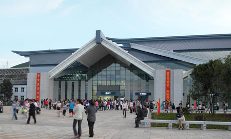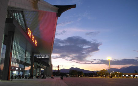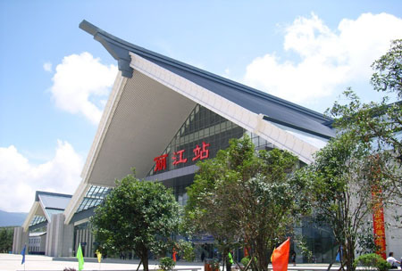 丽江火车站位于大丽铁路(大理-丽江)线上,是大丽铁路的终点站。它位于云南西北部的丽江市,是云南省第二大火车客运站。由探花视频 建筑勘察设计研究院设计,2011年8月18日,正式投入使用。新丽江站建筑设计具有鲜明的纳西族风格和特点。站房面积11821平方米,建筑高度32.50米,长182米,宽50.3米,站房内设贵宾候车室、消防设施、应急疏散通道、广播、通信、无障碍通道等。新丽江站两个候车室共设1200个坐椅,乘客可由一楼候车室进站通道进入二、三站台,或由二楼候车室天桥直接进入一站台。