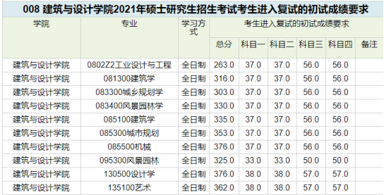 第一志愿报考我院各专业非专项计划的考生,初试成绩达到下表中对应专业的成绩要求,方才具备复试资格。