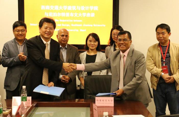 建筑与设计学院同尼泊尔特里布文大学工学院签订了合作备忘录。建筑与设计学院沈中伟院长、党委栗民副书记、院长助理崔叙教授、杨青娟副教授、刘春尧副教授、学院世界遗产中心张宇副主任等与来访的特里布文大学工学院Tri Ratna Bajracharya院长和Sudarshan Raj Tiwari教授进行了会谈。
