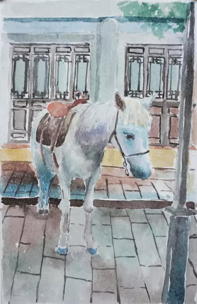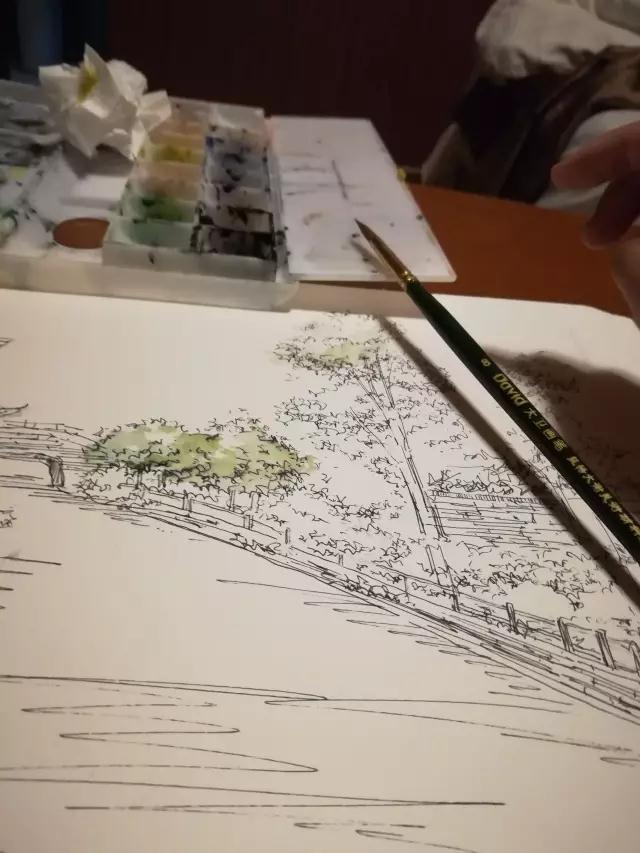 “水彩实习”这门课程是西南交大建筑与设计学院建筑学、城市规划、风景园林专业大二暑期的实习课程,在经过了半学期的课堂写生学习后,大家逐渐过渡到优美的户外风景写生中来。我国的建筑学科教育体系,也是参照西方教育体系设置的,50年代以来的建筑设计类专业,都必须系统地学习绘画,素描和水彩画是必修科目,有些学院甚至把美术作为考核学生是否适合学习建筑设计的前提。著名建筑大师杨廷宝、梁思成、齐康,无一不是技法娴熟的水彩画家。当然,作为建筑师、规划师,扎实的美学功底是成为出色设计师必不可少的先决条件,它包含建筑寓意、构图、形体、对比、色彩、空间等因素。